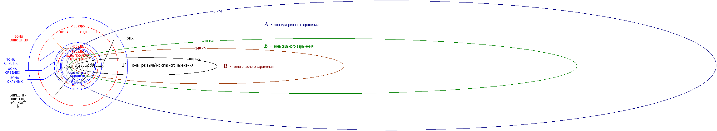 ПРИЛОЖЕНИЕ 1 - ЗОНЫ РАЗРУШЕНИЙ, ПОЖАРОВ И РАДИАЦИОННОГО ЗАРАЖЕНИЯ