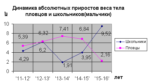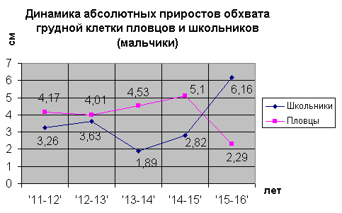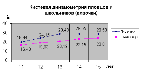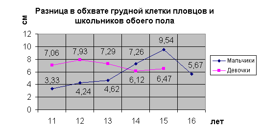 двигательной подготовленности пловцов и школьников 11-16 лет, не занимающихся