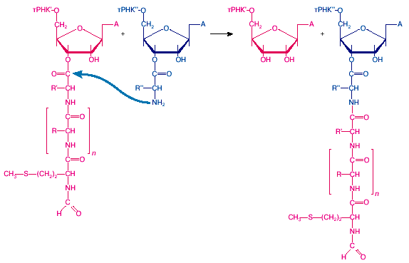 результате образуется новая пептидная связь, и пептидильный остаток становится