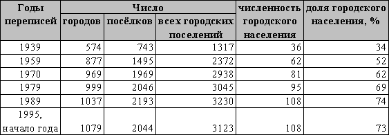 численность городского населения увеличилась ещё на 68,7%. Всего же за