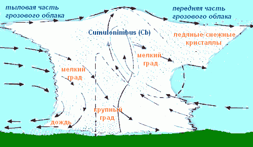 устремляется к поверхности земли, и мы наблюдаем выпадение крупного града. Так,