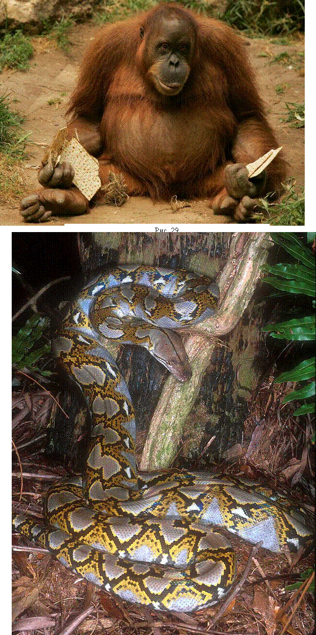 девственного леса живет орангутан — крупная человекообразная обезьяна. Шире