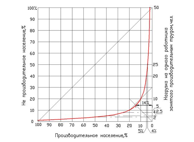 производительным трудом, приходится от силы один иждивенец. Фактически это