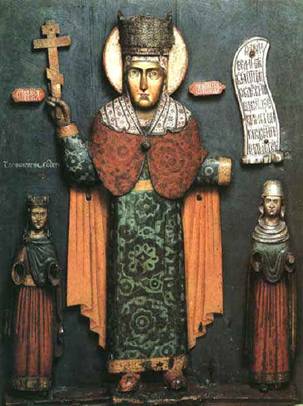 фигурирует здесь как патрональный святой «царя-освободителя» Александра II, главнейшим событием царствования
