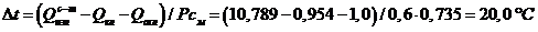 Расчет конечной температуры трубы в первой секции: