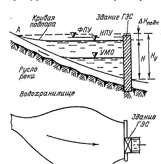 перегораживается путем сооружения здания станции и плотины. При этом образуется