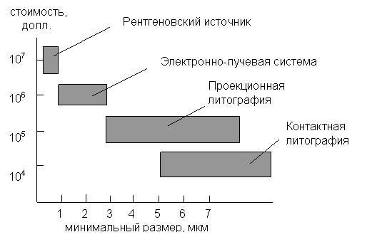 типов литографических процессов. Реальная ширина экспонируемой линии, примерно