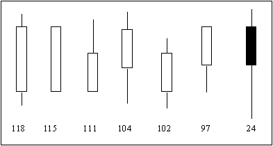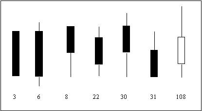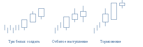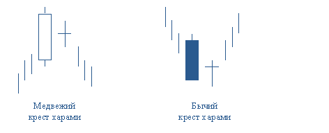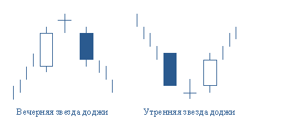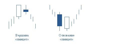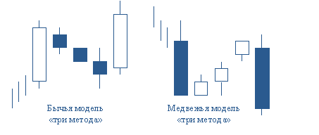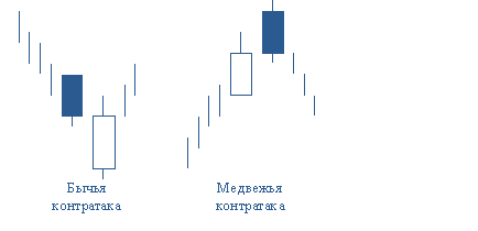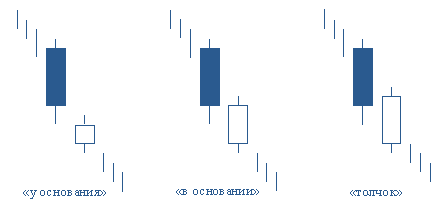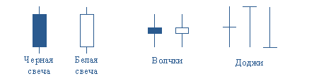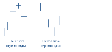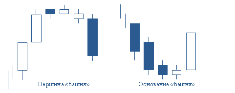 медвежьему периоду развития рынка, белая свеча - бычьему. "Волчки" -
