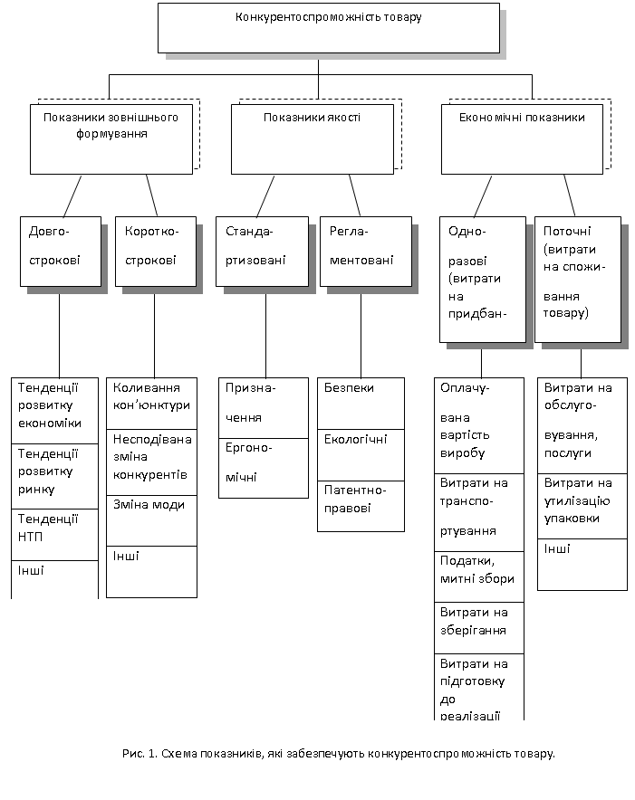 впливають на конкурентоспроможність товарів, зокрема їх споживчі властивості,