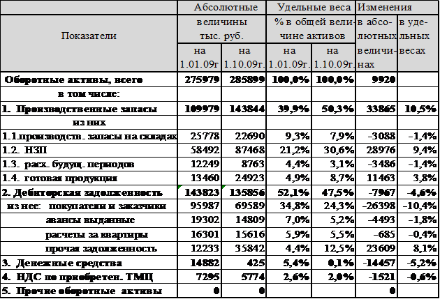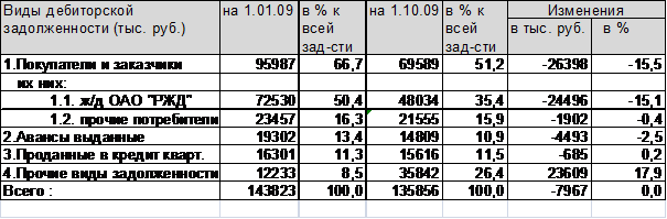 млн. руб., на 1.10.09г. – 4,4 млн. руб., снижение на 1,1 млн. руб. или на 20%);