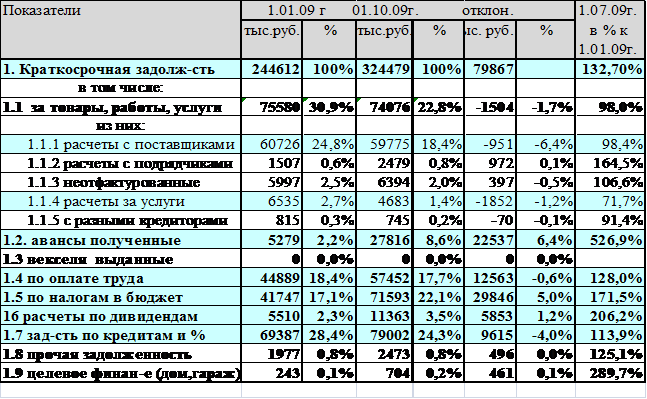 снижению просроченной задолженности по «авансам выданным»: на 1.01.09г. – 5,5