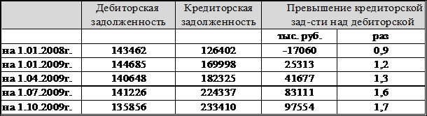 снижению просроченной кредиторской задолженности: по состоянию на 1.10.09г.