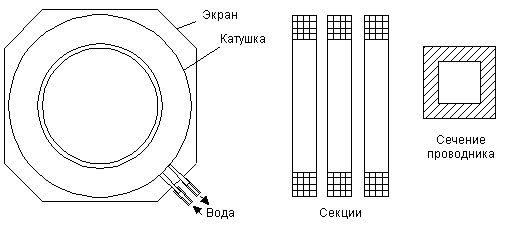 свою очередь состоит из нескольких секций, выполненных из полых проводников квадратного