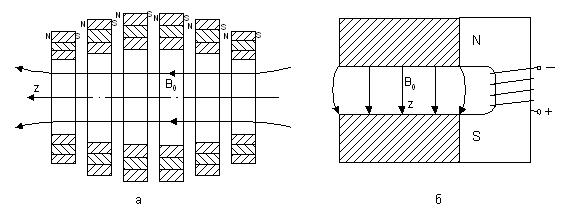 постоянный ток. Они могут создать поле с относительно небольшой индукцией В0