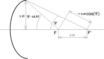 отклонение от идеальной поверхности не должно превосходить величины l/16 (т.е. 0.0023) у кромки параболоида