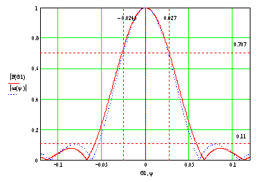 лепестков ослабляется дополнительно на 1.416 чем задано по условию, т.о.
