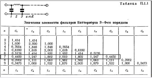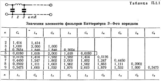 значения элементов для фильтра Баттерворта приводятся в табл. П. 1.1. Требуемые