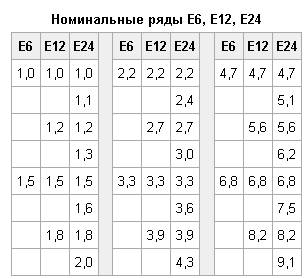 радиоинженеры помнят ряд E24 наизусть. Значения номиналов для некоторых рядов