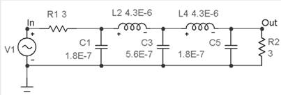 – фильтр Чебышева 5-го порядка с максимальным коэффициентом отражения 10%