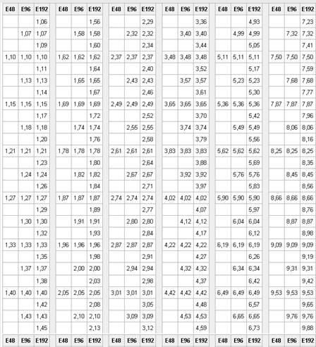 Ряды номиналов радиодеталей http://ru.wikipedia.org/wiki/E96