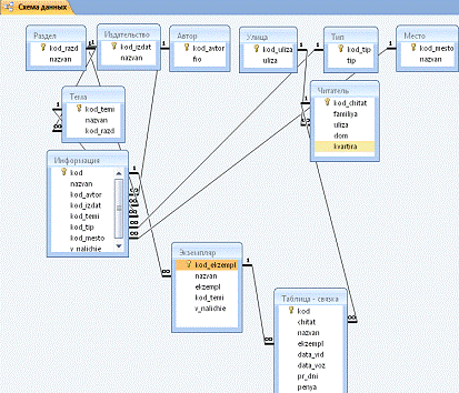 вклячаются в таблицы «Таблица - связка» и «Читатель».