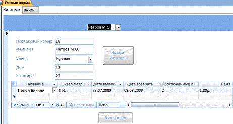 записей в форме для каждого конкретного Читателя. В основную часть формы