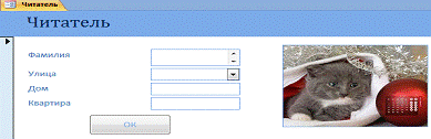 новый читатель. Открывает форму «Новый читатель». Привязан к событию «Нажатие