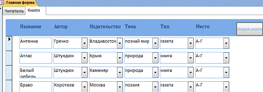 использует кнопку «Новая книга», после ее нажатия открывается форма