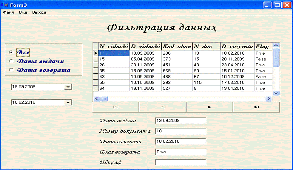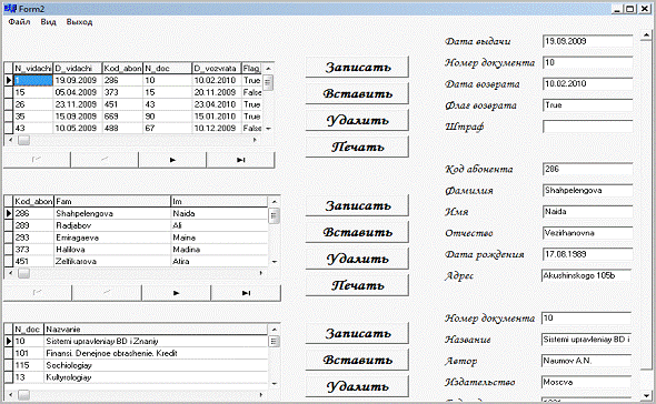 В курсовой работе создана специализированная база данных для ведения учета абонентов библиотеки, а также рассмотрены основные понятия и принципы, лежащие в основе систем управления базами данных. Разработано объектно-ориентированное программное приложение. Произведена разработка алгоритмов, был выбран язык программирования Borland С++ Builder, как наиболее подходящий для данного проекта, реализующая разработанный алгоритм.