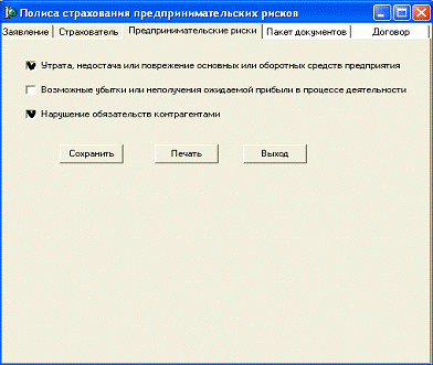 договоров страхования предпринимательских рисков" (рис. 7); если бланк