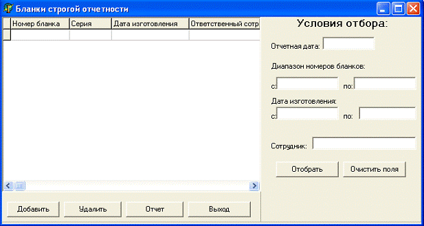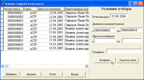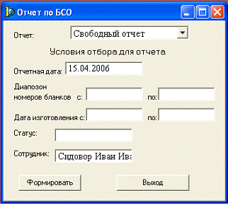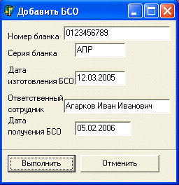 строгой отчетности, то инициируется окно "Бланк строгой отчетности"