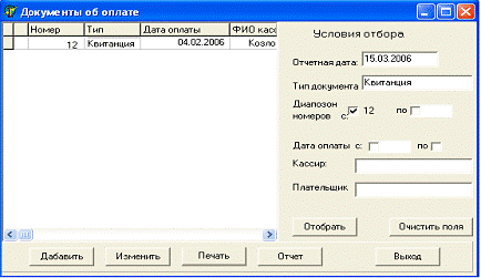 (рис. 22); если выбран тип - документ об оплате, то открывается окно