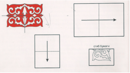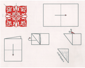 орнамента бумагу складывают втрое. Получается прямоугольник. Затем вдоль