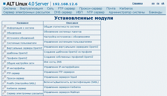 программным обеспечением на базе программного комплекса Webmin/Alterator