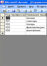 двойным щелчком откройте таблицу «Справочник», появляется форма таблицы