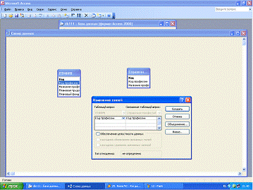 диалоговом окне «Изменение связей» кнопку «Создать», в диалоговом окне «Схема