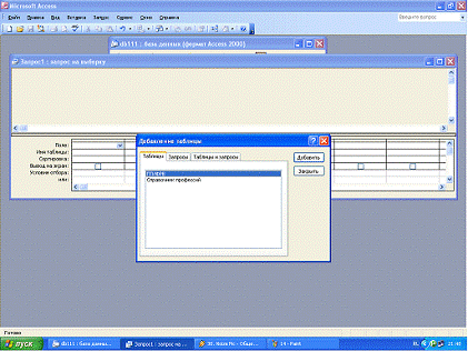 выборку» и диалоговое окно «Добавление таблицы» (рис. 8)