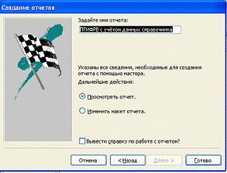 нажмите кнопку «Далее». Появляется диалоговое окно «Создание отчётов» для