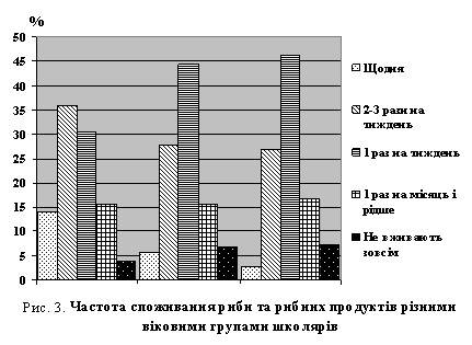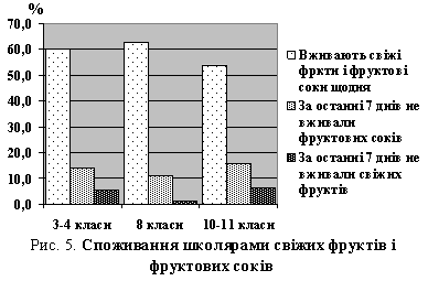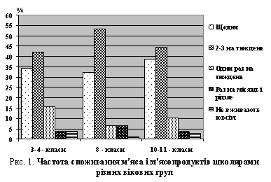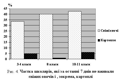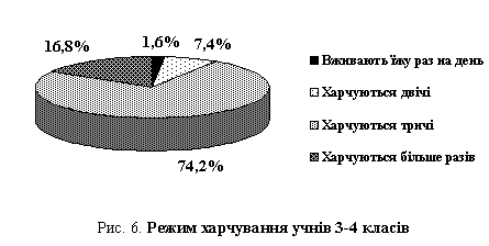 більшість школярів (понад 70%) вживають їжу три і менше разів на день, тимчасом