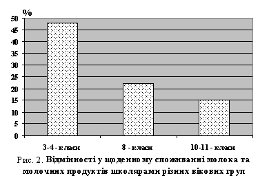 дослідження структури харчування школярів різного віку в двох загальноосвітніх