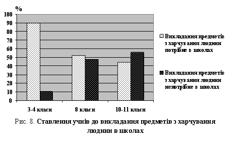 шкільної молоді (понад 62%) прагнуть вивчати предмети з харчування людини, а