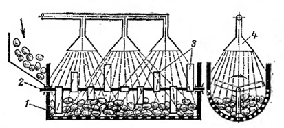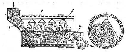 Схема мытья овощей в машине с перемешивающими лопастями.