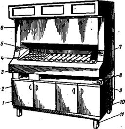 2 – стол разгрузки; 3 – боковые дверцы жарочной камеры; 4 – вентиляционный