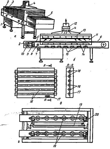 короб; 5 – транспортер; 6 – стол загрузки; 7 – реле времени; 8-электродвигатель;