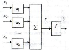 вектора (входной сигнал), i=1,n; b – значение смещения (bias); n – число входов нейрона; у – выходной сигнал нейрона; f – нелинейное