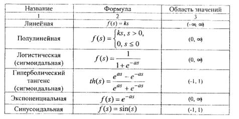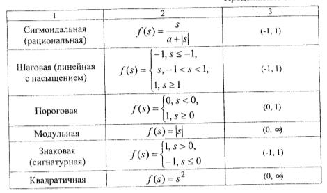 нелинейную функцию одного аргумента – выхода сумматора. Эта функция называется