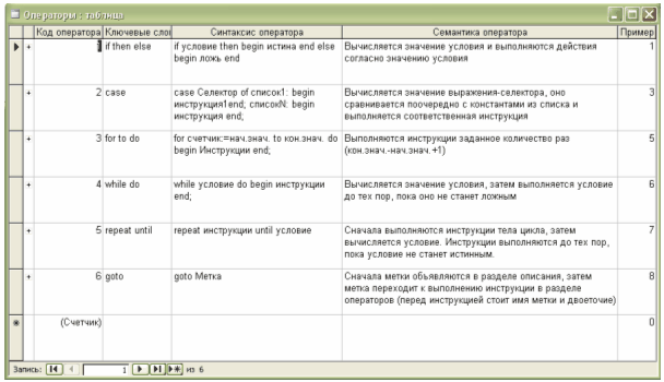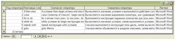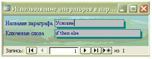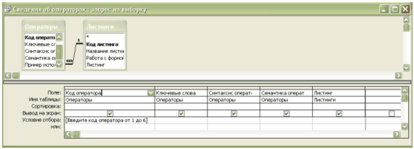 визначається змістом інформації в базі даних. Обов’язкові поля: з операторами,