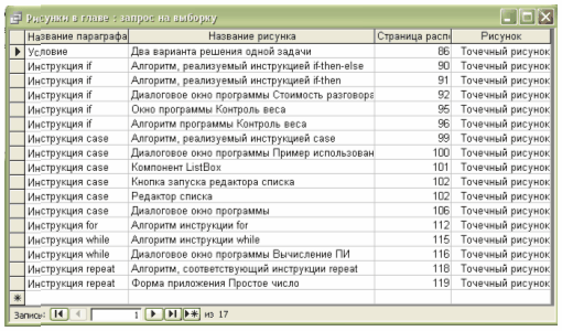 екранні копії таблиць, бланків запитів за зразком, вікон, звітів, тощо.