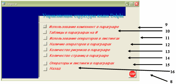 віконних форм та таблиць (від 4 до 7). Реалізація семи запитів різного типу, в