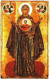 правило, изображениям Богоматери Знамение (иногда - Великая Панагия); раскрывает